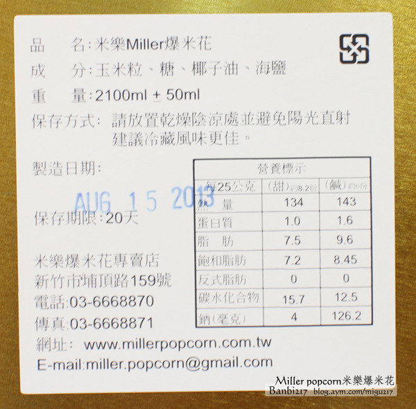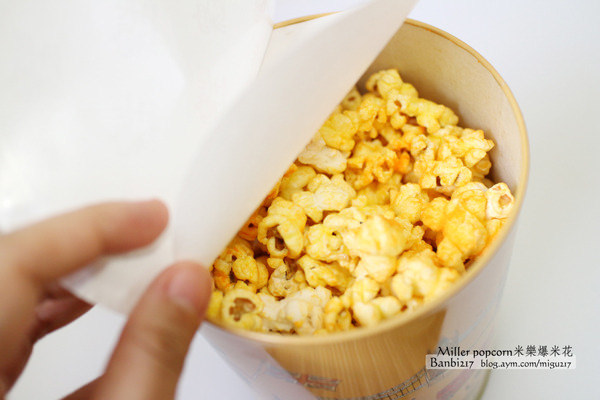打開米樂爆米花的蓋子,有張米樂的名片及封膜。