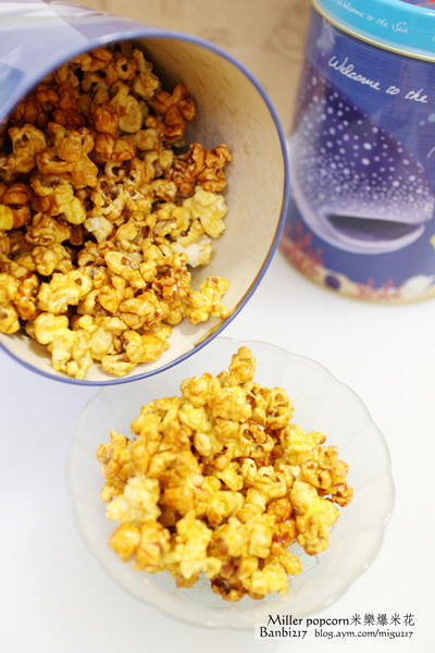 焦糖爆米花和原味甜心爆米花一樣是帶有酥脆的糖衣包裹在爆米花外層,甜度上比原味甜心爆米花還來的低而且還有那焦糖的香氣,這款挺得我和家人的心!