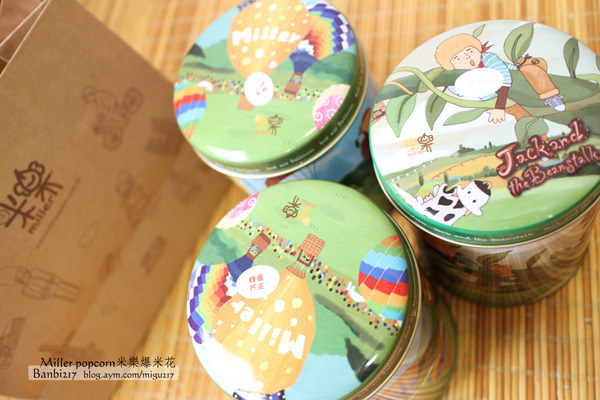 米樂爆米花的口味好多且又好吃!最讓人喜歡的是米勒爆米花的鐵罐真的好可愛,是手繪風格且有多種系列圖案,有英國風、海洋風、台東熱氣球、傑克與豌豆,當伴手禮送禮很大方,自己吃完也可以留著裝飾擺放用。