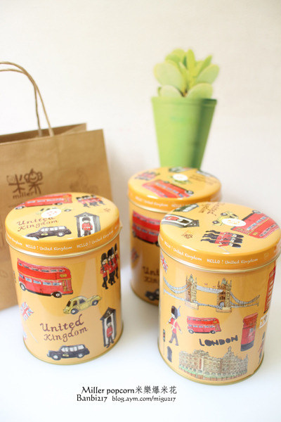 培根起司、黃巧達起司、墨西哥辣椒口味的爆米花。英國風的罐子和海洋風的罐子是我最喜歡的兩種,我打算爆米花吃完後要將罐子洗滌乾淨拿來裝物品使用,無論是裝放茶葉、飾品、發票、當作存錢筒又或是其他收納用途都很合適且美觀。