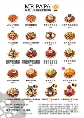 新版菜單請見↑(取自MR.PAPA WAFFLE&CAFE 比利時鬆餅專賣店FaceBook粉絲專頁)