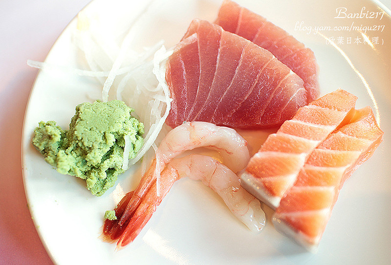 生魚片類有鮪魚、旗魚、鮭魚、黃金魚及甜蝦。
