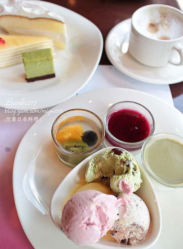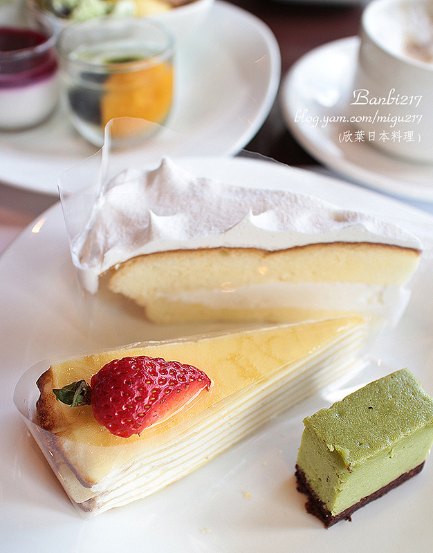 甜點蛋糕選擇種類性多,有千層蛋糕、巧克力蛋糕、波士頓蛋糕、抹茶蛋糕、烤餅乾、泡芙、果凍、奶酪、麻糬等,整體味道稍嫌甜膩,雖然不會說好吃但以吃到飽的質來說還不錯了。