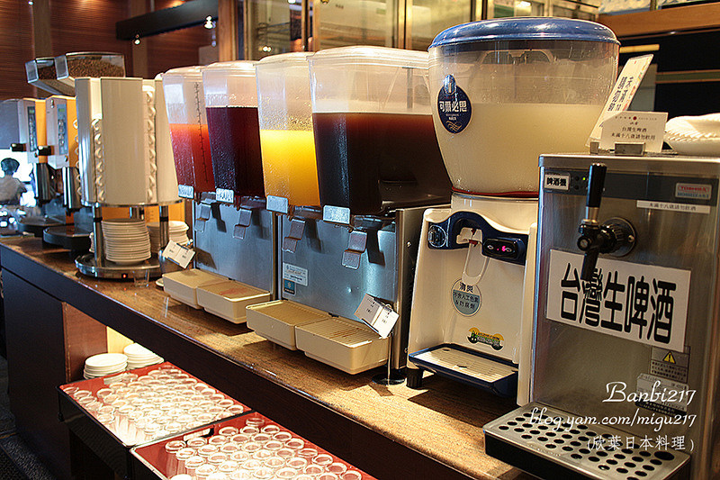 無限暢飲的咖啡、茶類、果汁(調和)、原味可爾必思、台灣生啤酒。