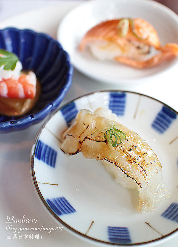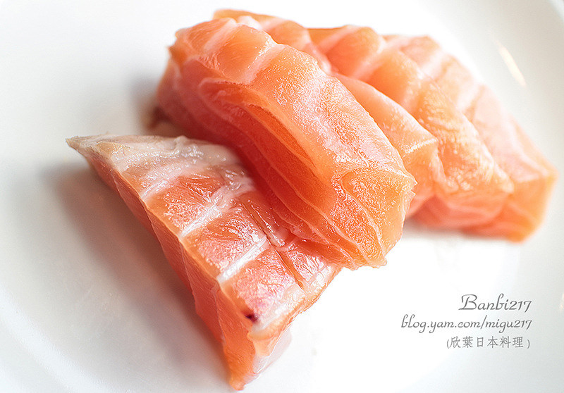 鮭魚生魚片蠻新鮮的也帶有些甜味及油脂,另外欣葉日本料理的生魚片若不特別說明,師傅一次只會給兩片分量。