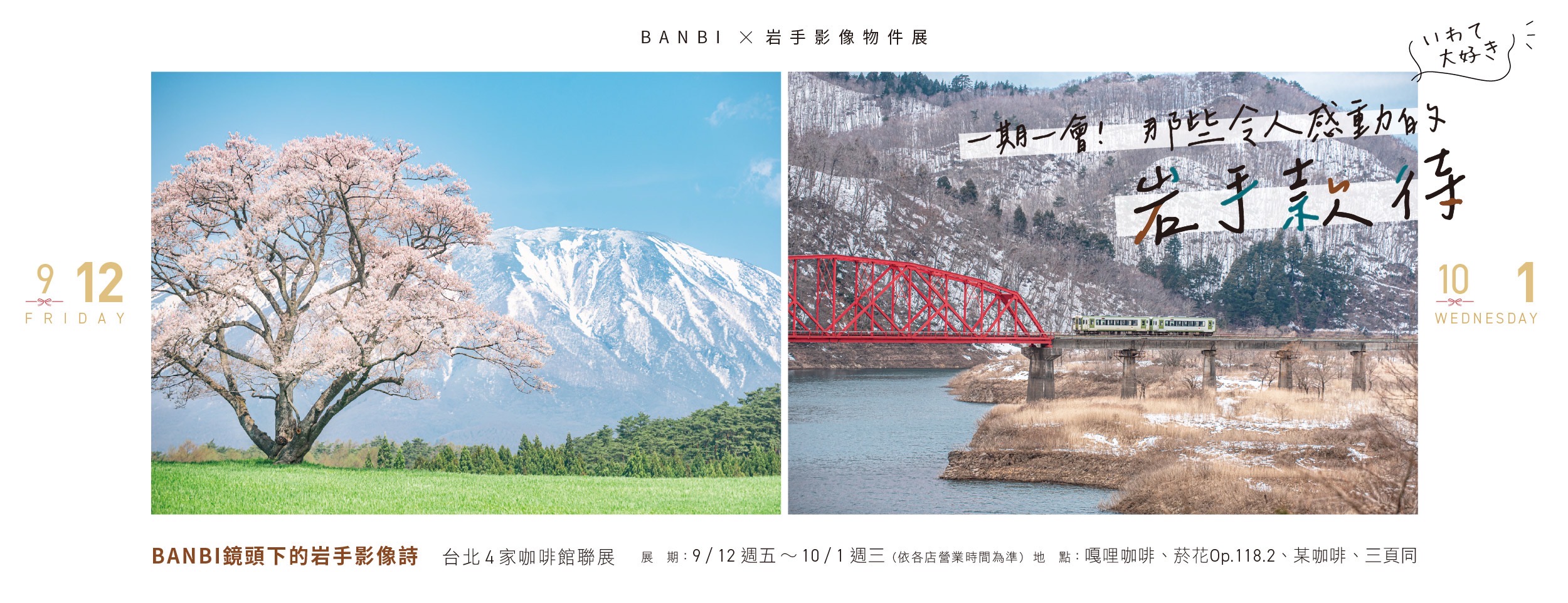 「一期一會!那些令人感動的岩手款待」影像物件展:與日本岩手縣合作,2025.09.12~10.01於台北四家咖啡店展出,同時09.13舉辦三場開幕茶會。