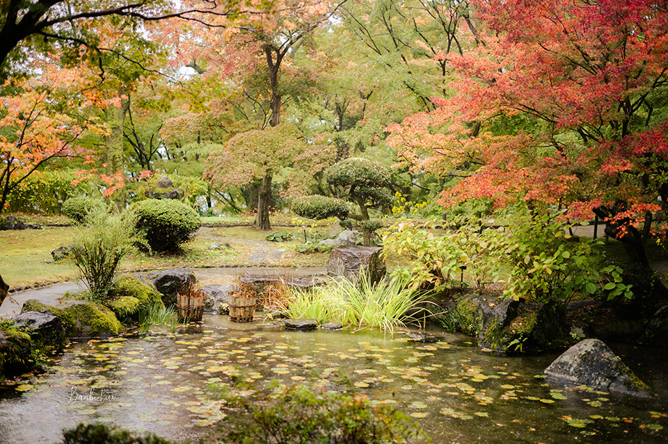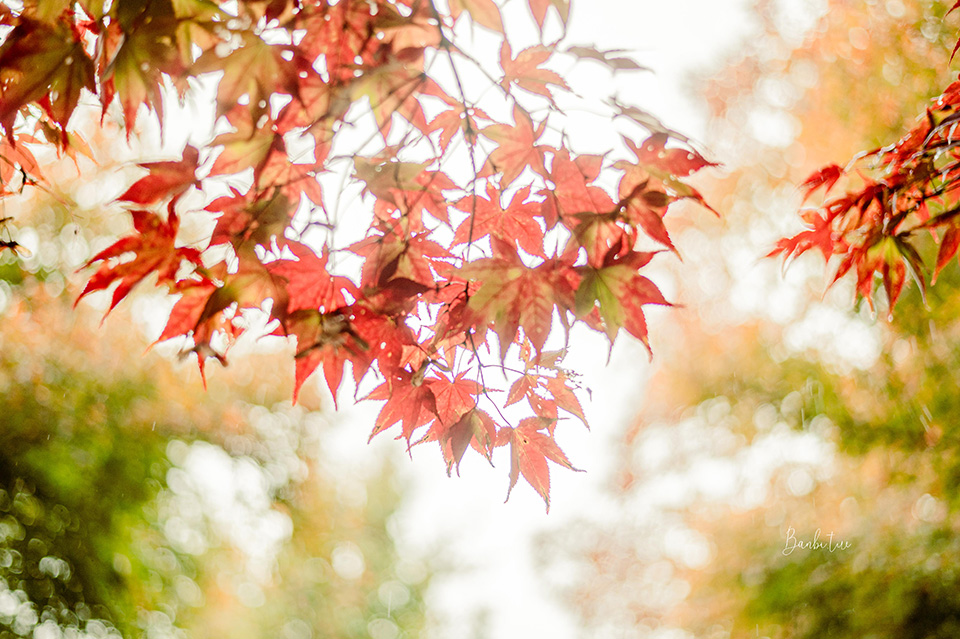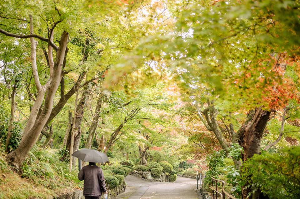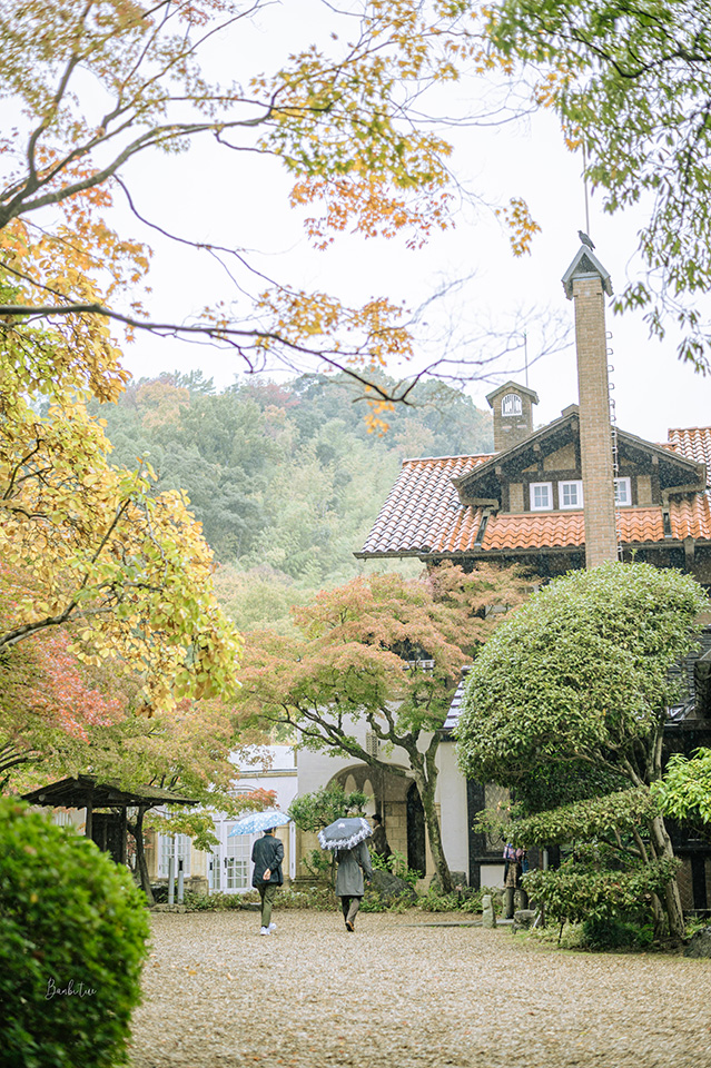 即便是雨天,撐著傘也不影響心情,因前往朝日啤酒大山崎山莊美術館的道路上有不少正在轉紅的楓葉,正好讓人邊走路邊賞楓。