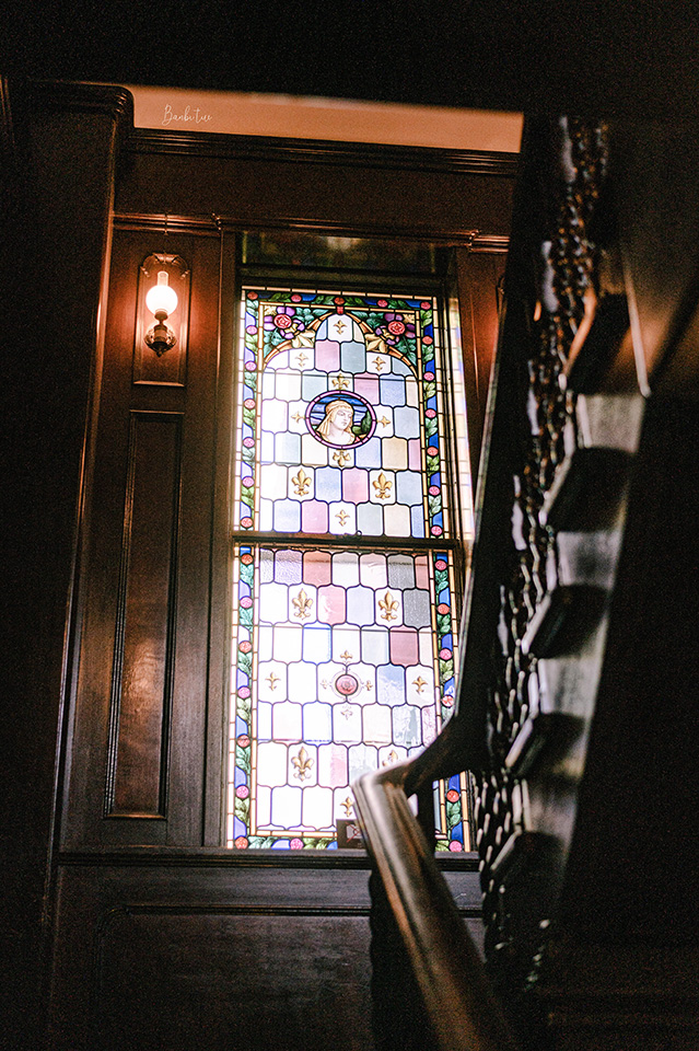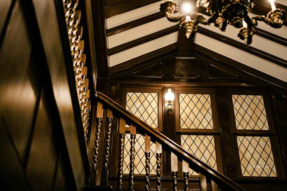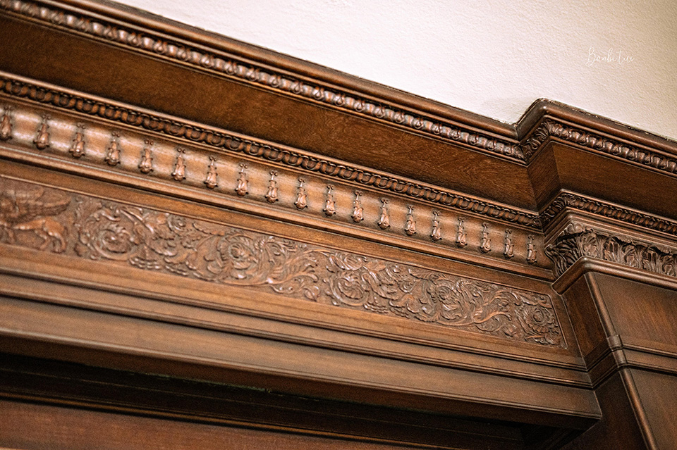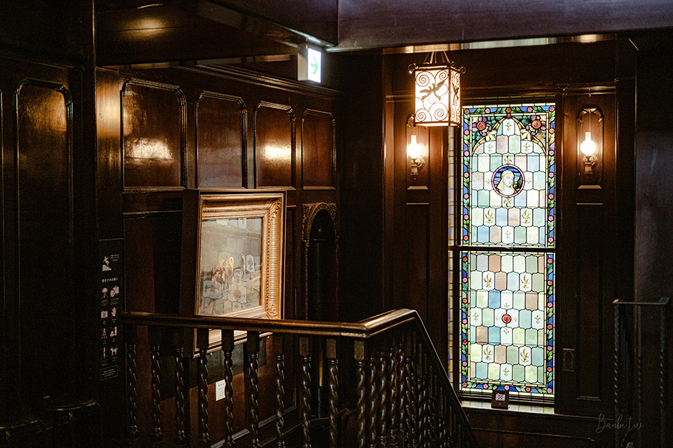 #在屋內也見到企業家加賀正太郎的小巧思,雕花融入「竹筍」,源自中國漢代時陵墓裡的裝飾。