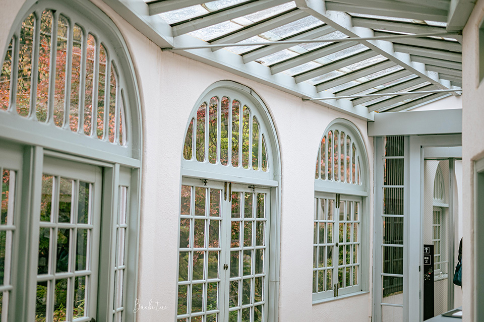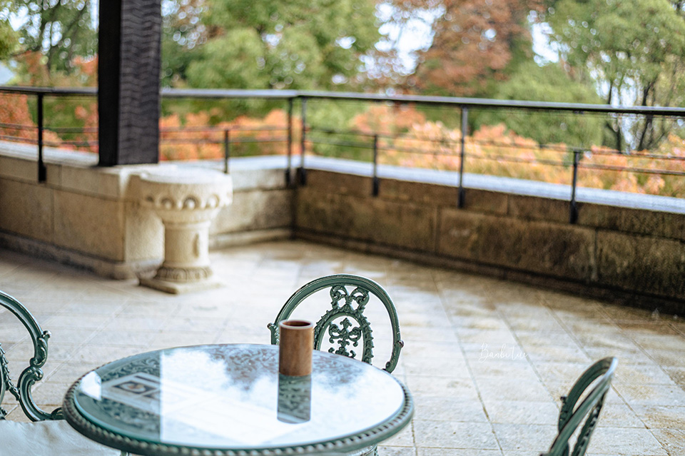 原先建築為大正時期至昭和初期的大山崎山莊,盡可能保留原貌後修復,另娉請安藤忠雄於美術館園區操刀設計新的安藤忠雄設計地中寶石箱。館內特地收藏名著莫內大師的睡蓮畫作,更設計了蓮花池以重現「睡蓮」作品。我們在下雨天時來到這,美術館外的楓葉、樹木,像是個夢幻的小森林,品嚐因應每次主題特地設計的甜點、飲品套餐,好浪漫。