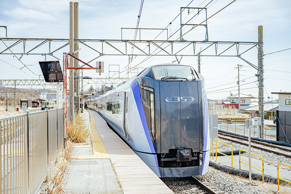 初次前往河口湖周邊以外的山梨旅遊,交通方面我們搭乘JR E353系的特急列車「梓號」(あずさ Azusa),主要從東京的新宿車站出發,中途經由山梨區域,一路開往長野的松本站或白馬車站。