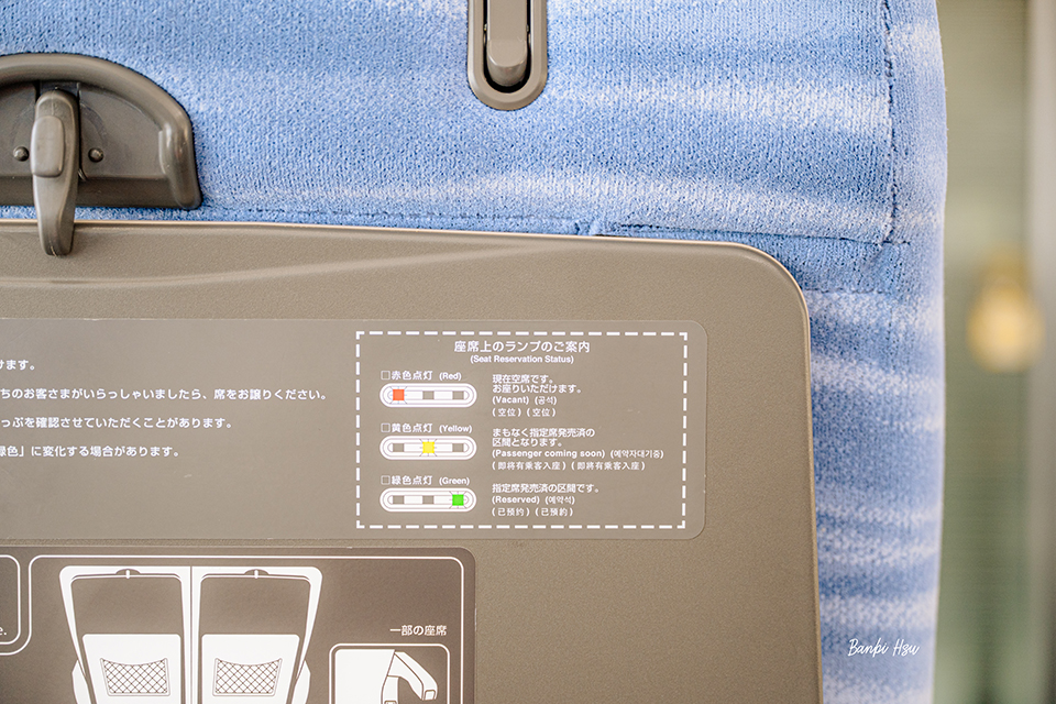 大部分列車上設有燈號,綠燈為該位置已被預約,黃燈為即將有預約的乘客入座,紅色為空位(但可能隨時會變換成黃色燈號)。