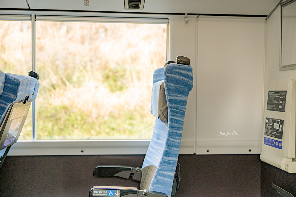 若需使用輪椅者專用位置,可預訂2、0、10號車廂,在最後方設有兩個輪椅者專用座位。