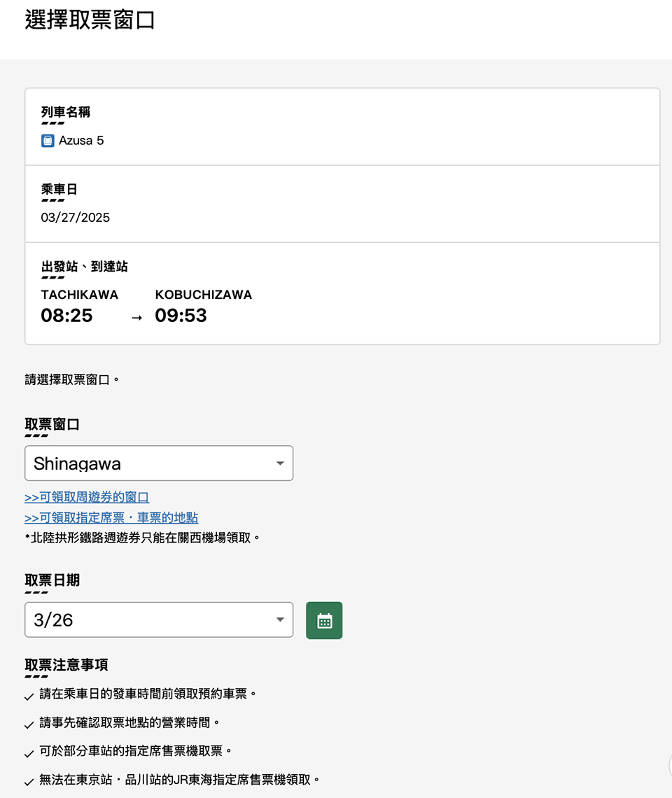 JR PASS 東日本周遊券購買、兌換、劃位、領取票券
