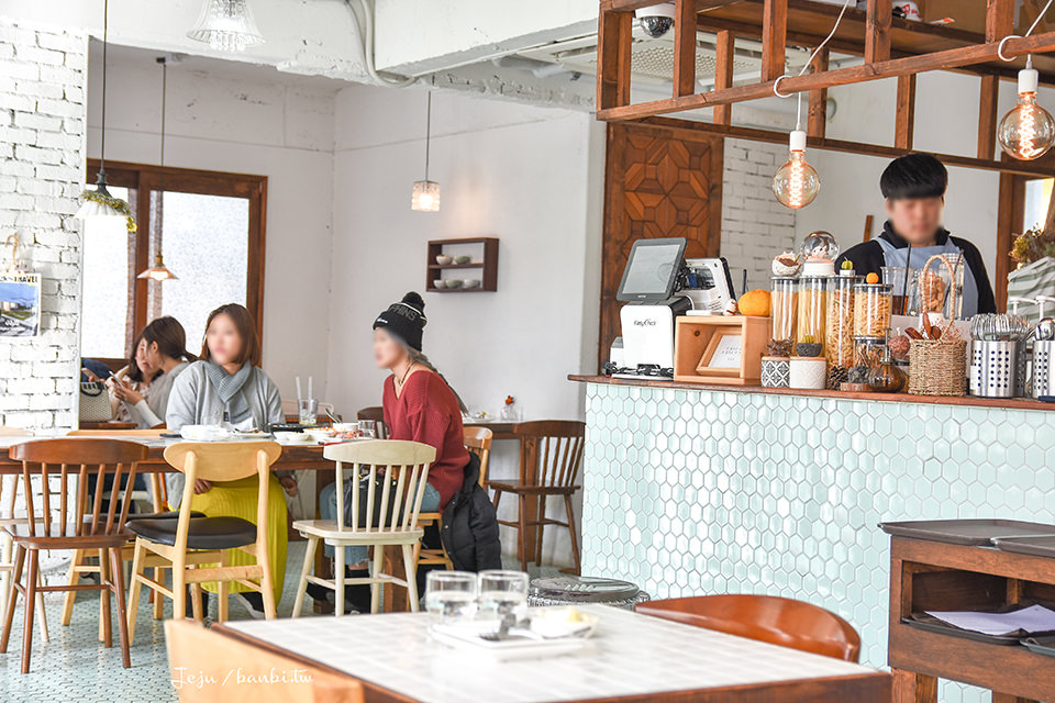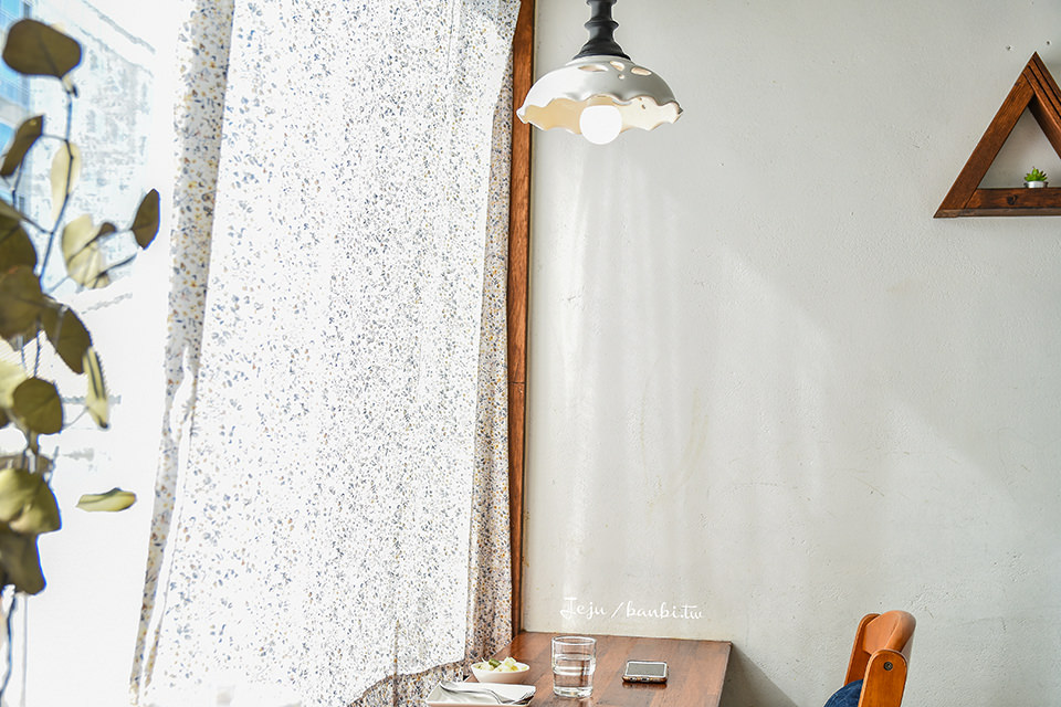 大片的落地窗與簡單白淨的裝潢,白磚塊、木質,雖這些大多是現今韓國熱門咖啡館的裝潢特色之一,不過飯流氓(밥깡패 babkkangpae)又有些不同,是種溫馨帶點居家的感覺。