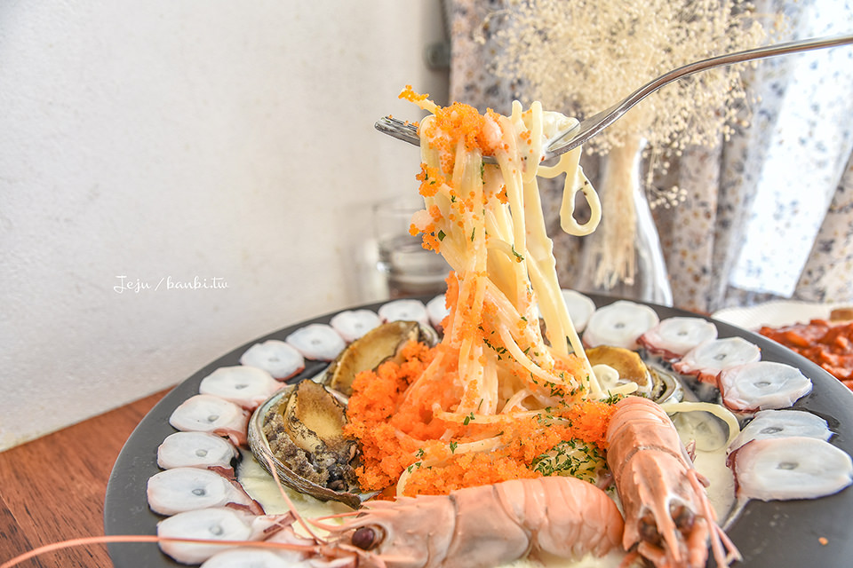 濟州島美食飯流氓:超豐盛海鮮義大利麵,擺滿章魚、鮑魚、蝦子、蝦卵山,高人氣餐廳