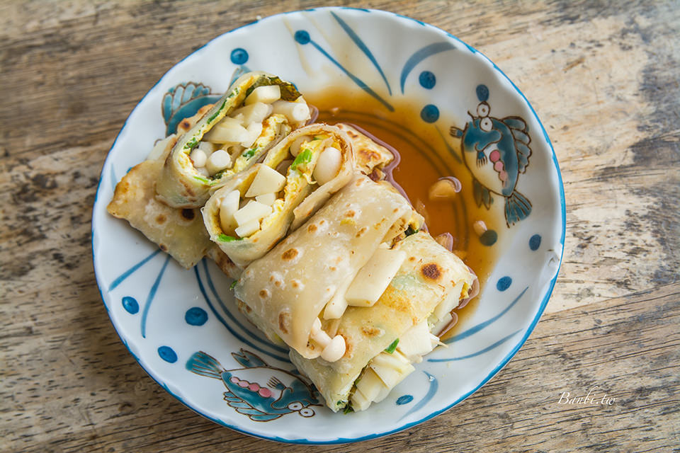 一開始原本想點栗子地瓜蛋餅,但因為當天沒有賣,所以改點選娃娃菜蛋餅,裡面同樣有包一些美白菇。