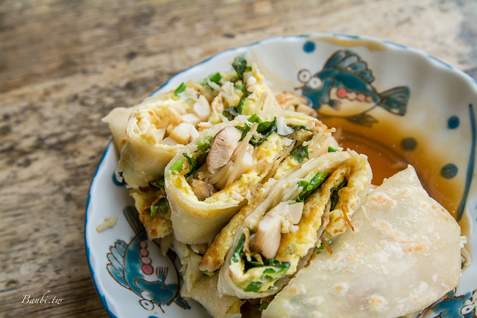 雙菇蛋餅意思是香菇、金針菇還有雪白菇,有淡淡的蔥香與九層塔香,調味適中不會過重。