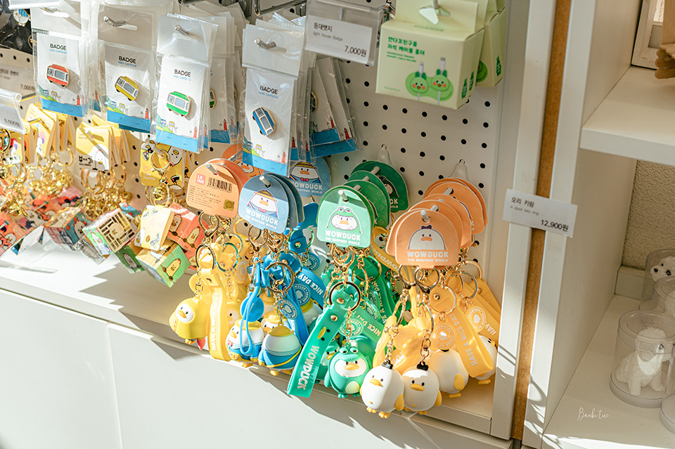 海雲台藍線公園尾浦站、青沙浦站裡販賣的周邊商品、明信片很可愛,像是列車的胸章、釜山吉祥物boogi或是其他動物的吊飾和娃娃等。