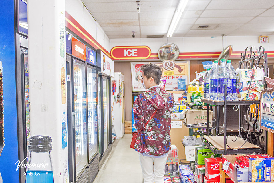 “Henry’s Groceny”是附近較近的便利商店了,畢竟卡皮拉諾吊橋公園內的賣店即便是礦泉水價格都很高,於是我們來此購買飲用水喝。