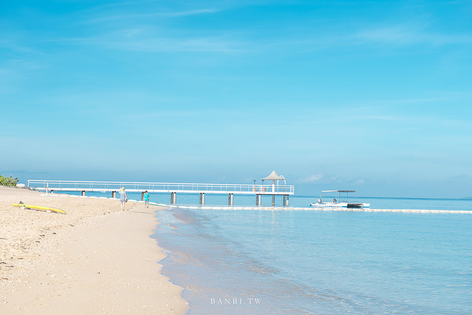 遠處見到海灘上有一長長的白色建築,從岸邊延伸至海,這就是石垣島熱門的旅遊景點之一,「天使碼頭」(FUSAKI ANGEL PIER)。