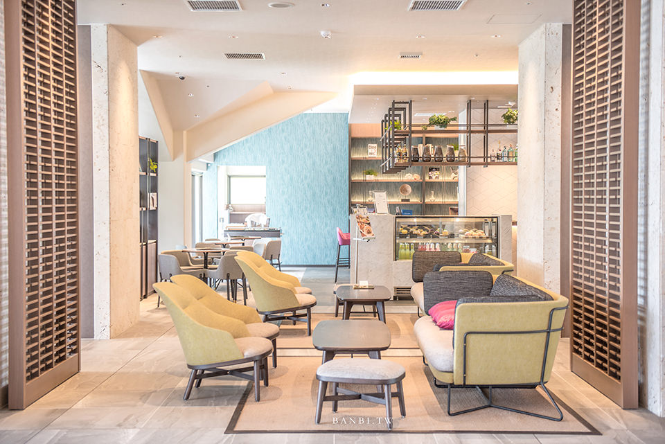 富崎海灘渡假酒店大廳很寬敞舒適,有不同的桌位區還有關於沖繩本島、石垣島的旅遊資訊可索取。