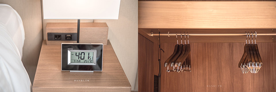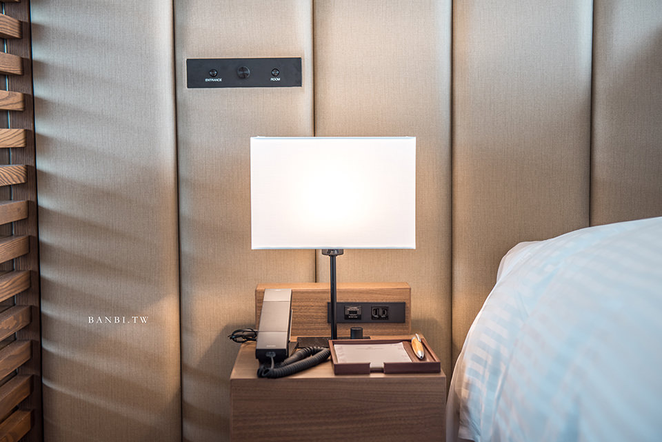 床頭櫃貼心的設計了充電插座,其實整個房間內的插座量都很足夠,插座位置也有考量使用者的習慣,像是床頭、和室桌椅旁都有設置。