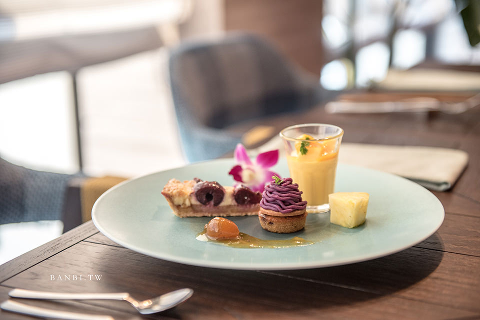 甜點區的品項同樣很豐富,有現煎的可麗餅、各種水果塔與慕斯凍類,還有沖繩的紫地瓜甜塔。