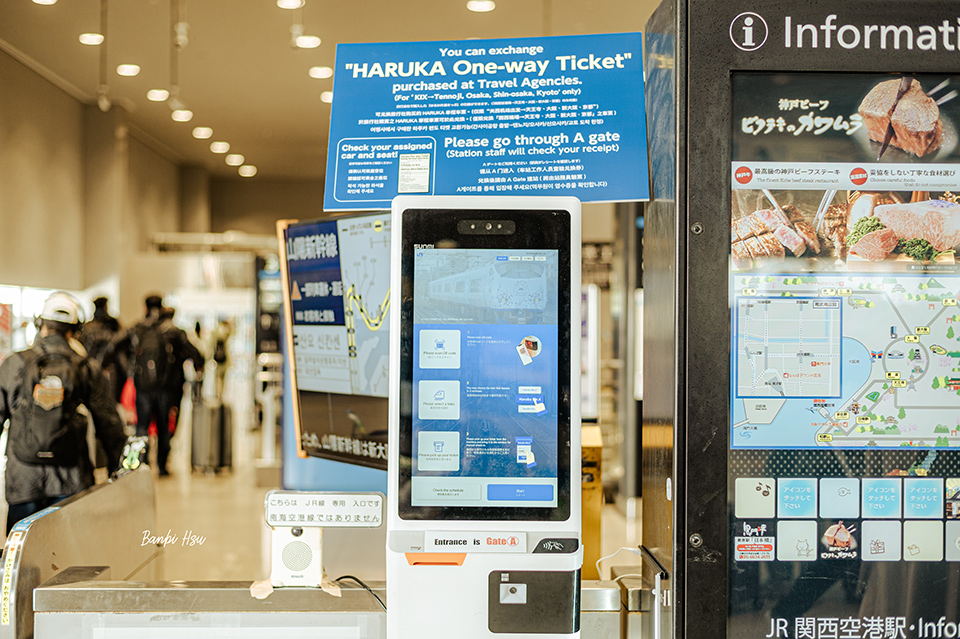 為了減少HARUKA換票人潮,JR西日本在關西機場設置了2台HARUKA專用取票白色機器,就在HARUKA搭乘處的閘門旁,可避開一般在售票機台擁擠的人潮,省下非常多時間,推薦大家利用!