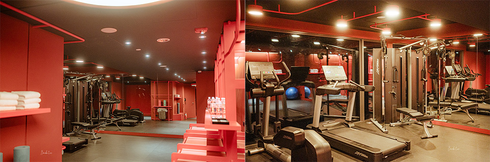 健身房有各式訓練器材、跑步機等,同時供應了毛巾、水,畢竟在酒店餐廳裡吃了那麼多食物,來消化一下熱量也好。