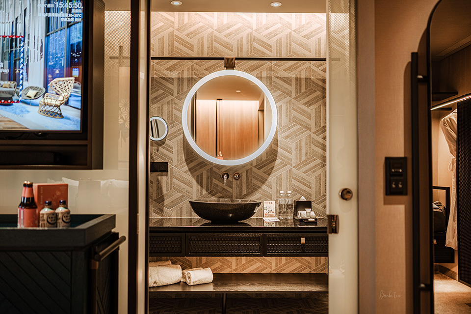 有時客房會有小驚喜,不定期更換內容,送完為止;今年3-4月櫻花季期間提供的限定客房禮物,金色三麥櫻花啤酒、奮起福米餅合作的櫻花米磚。