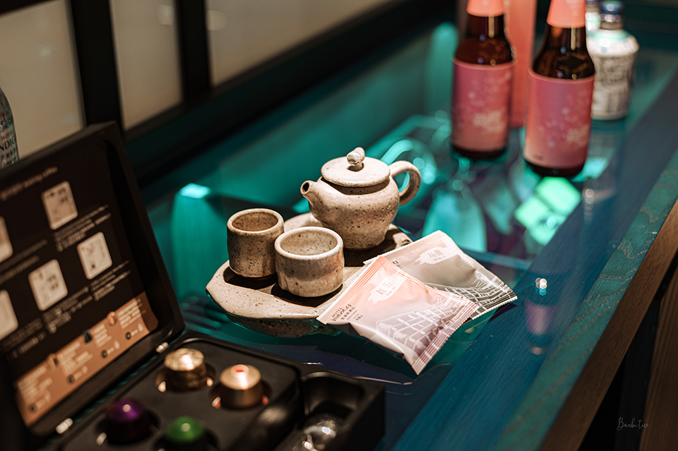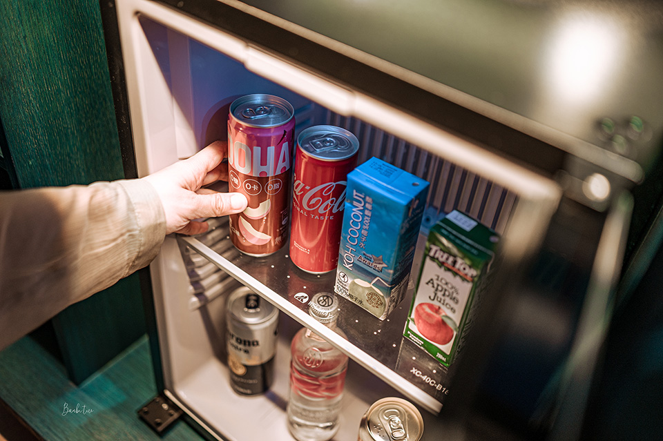 客房內的阿里山茶、膠囊咖啡及冰箱裡的飲料皆為免費提供,氣泡礦泉水、蘋果汁、椰子汁、可樂、啤酒等。