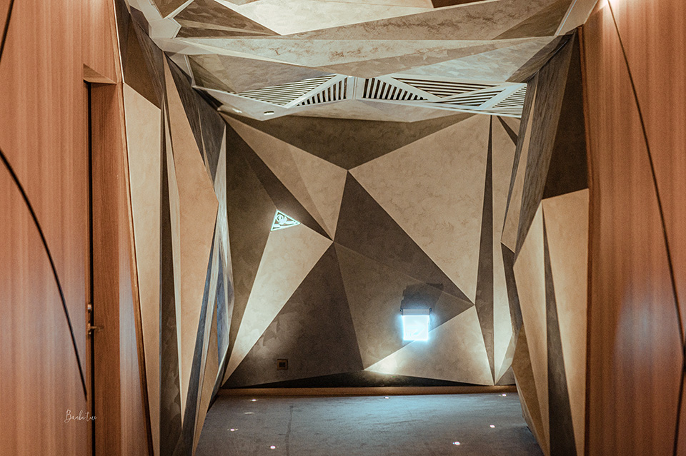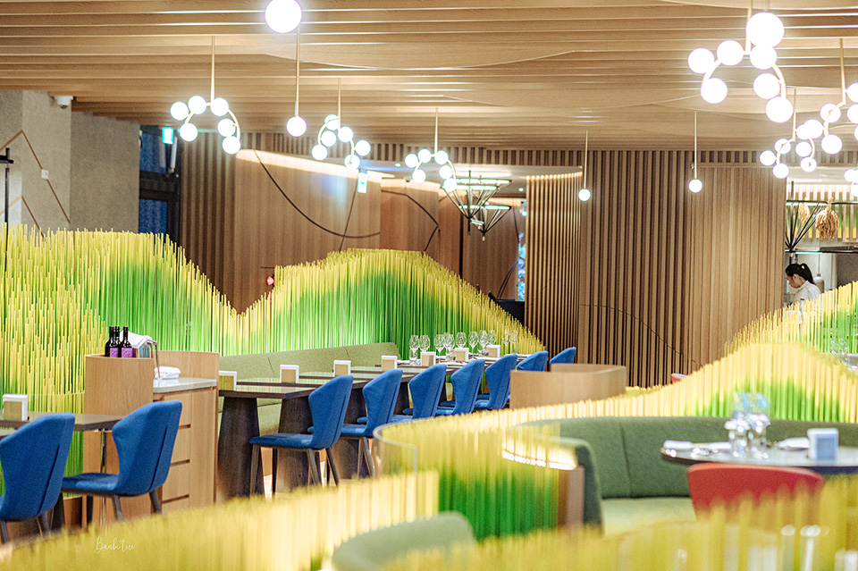 大廳上的裝飾,把我們帶進阿里山上的竹林之中,發著光的末端,是夜裡光亮的螢火蟲。