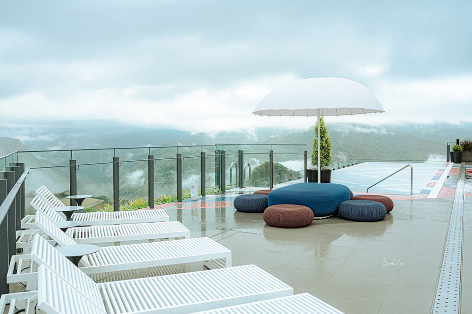 阿里山英迪格酒店頂樓有設置健身房、高空無邊際戲水池(類似小型的戶外露天泳池)、熱水池,美麗的景緻即在眼前,這也是阿里山目前唯一有無邊際景觀戲水池的酒店。