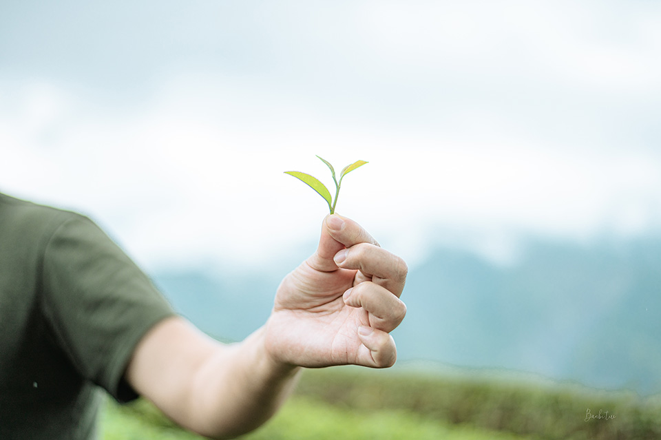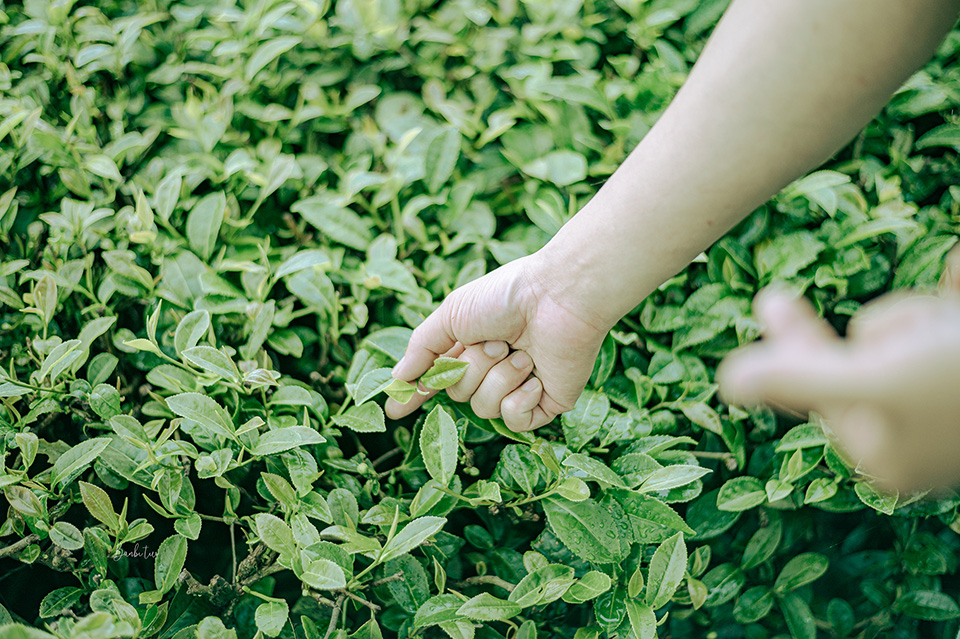 生力農場主人親自教我們採茶的方法和手勢,按照他教學的方式,便在茶園中找尋一心二葉。