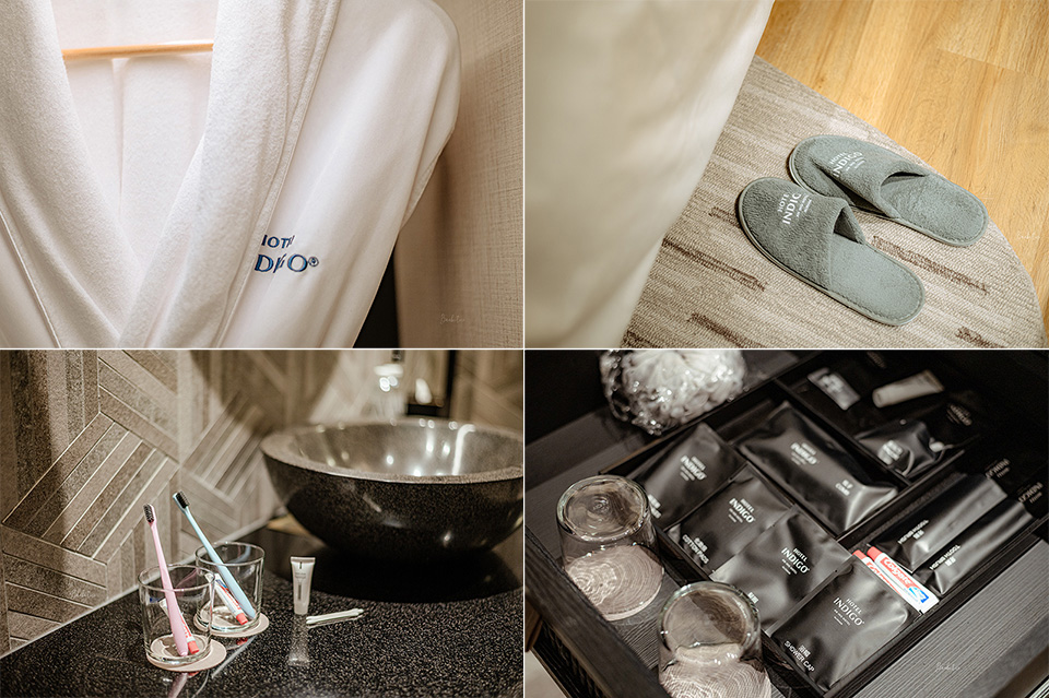 #牙刷、牙膏、刮鬍刀、棉花棒、化妝棉、浴帽皆有提供,房間內的浴袍和房間拖鞋材質都很柔軟舒適。