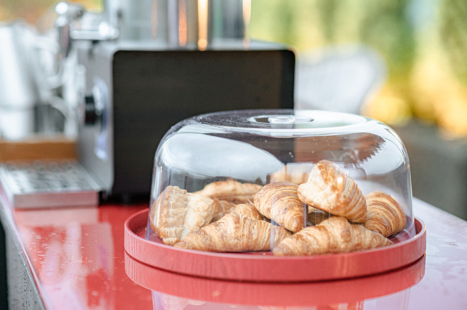 由於阿里山英迪格酒店提供早餐時間為7點開始,為了讓一早到頂樓看阿里山日出的客人可以吃東西裹腹、暖胃,他們準備了熱可可和麵包,超級貼心。