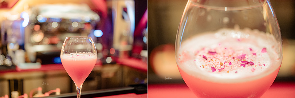 為呈現阿里山櫻花季時的春櫻美景,’aveoveoyu 酒吧推出有酒精以及無酒精版本的調酒「花魁 Orian」、調飲「花落君思Flower Drops 」,此杯花落君思運用了荔枝、葡萄柚、櫻花,更添夜晚浪漫氣氛。