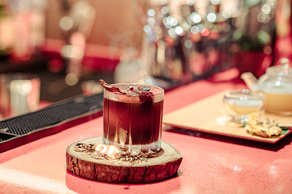 如喜歡酒感香厚,這杯獵人的凱歌以煙燻、酒釀櫻桃、黑可可、利口酒等做元素,上方還有他們自己烘製的脆培根實在好棒。在呈上桌前會將酒杯旁放置的木屑點燃,那些煙霧、火苗似獵人滿載歸來後的慶賀。