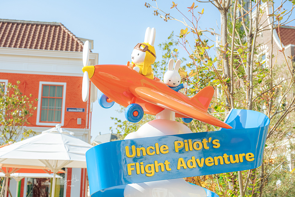 「機長叔叔的冒險之旅」外面的標示牌也特地做了一個和遊樂設施相同的Miffy,這種小細節太可愛了!!