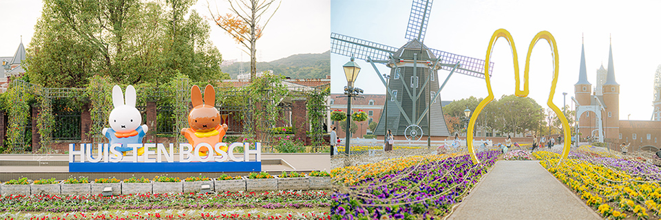 在豪斯登堡迎賓門附近的花卉道路、荷蘭風車區域,也有可愛的Miffy擺設。