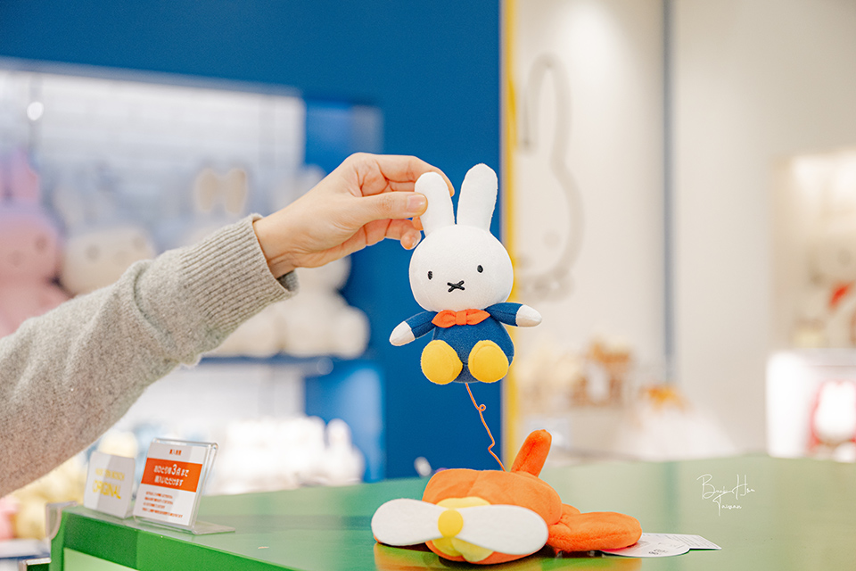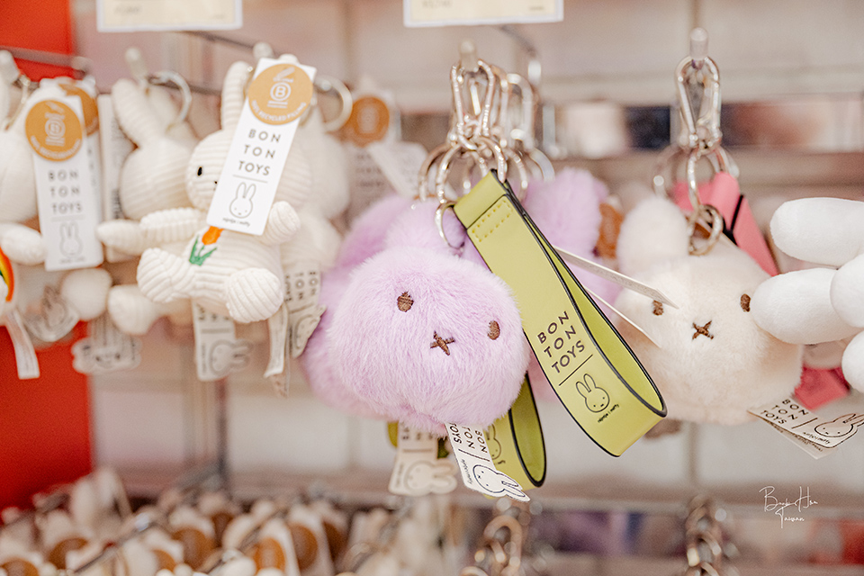 跳跳兔禮物館的Miffy周邊商品有玩偶、吊飾、雨傘、文具用品、甜點餅乾禮盒,以及Miffy的朋友們。