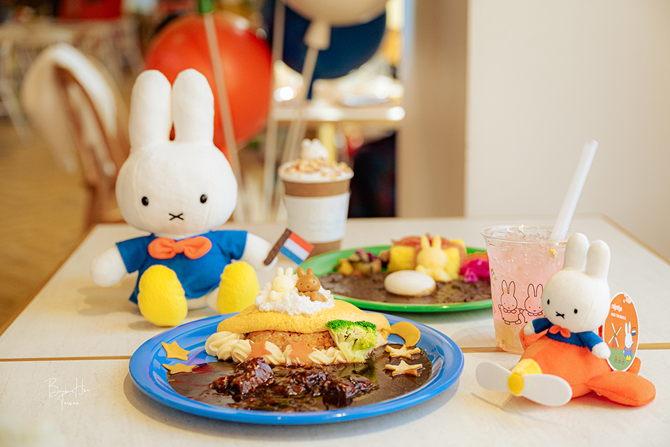Miffy美夢蛋包飯 2,200日幣、Miffy的驚喜禮物咖哩 2,000日圓、Miffy的慶典汽水 700日幣