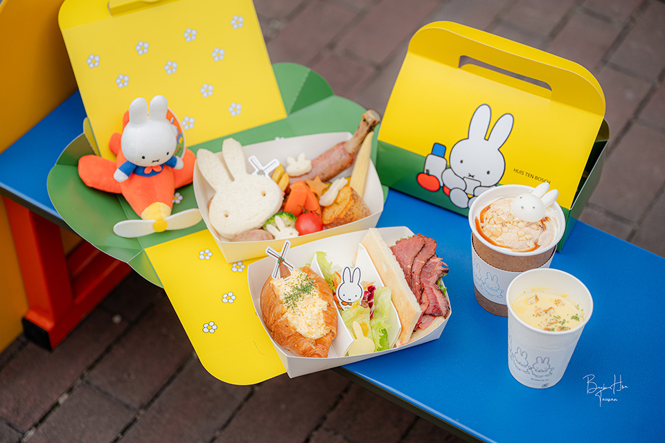 假日野餐咖啡館為外帶餐廳,以跟Miffy一起去野餐的概念設計了方便野餐時吃的餐點,像是三明治、德式香腸、濃湯、飲料,這之中我較喜歡「Miffy的起司鍋」,將野餐盒內的蔬菜和其他食物沾上濃郁的起司,味道順口不膩。