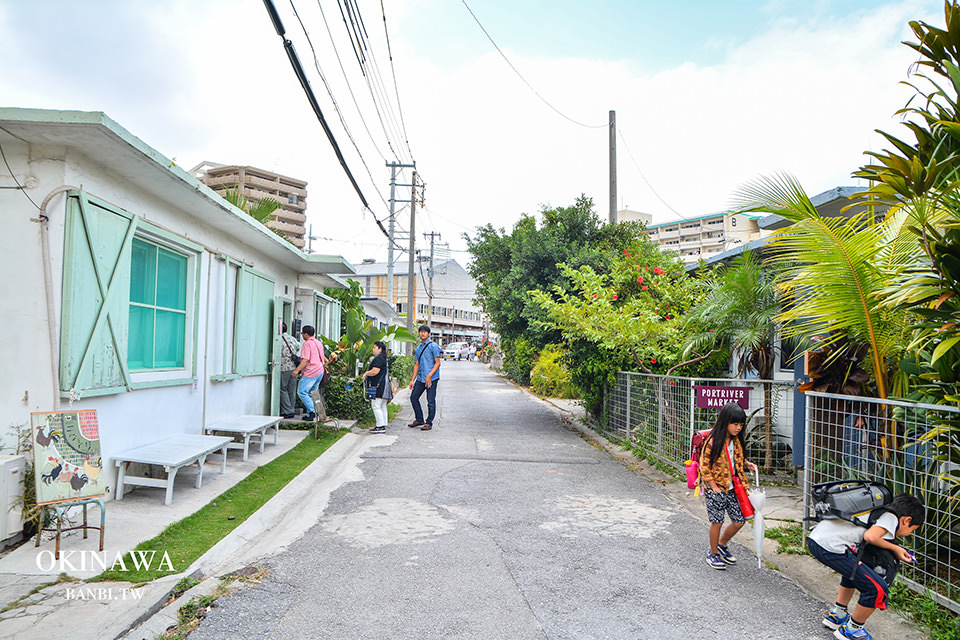 來到沖繩的外人住宅,這裡的感覺讓我想起台北陽明山的美軍宿舍群,不過沖繩這裡的裝潢外是潔白的白色搭配繽紛可愛的色彩,而且很多店家佈置上很細膩可愛,幾乎每間店都讓人很好奇。