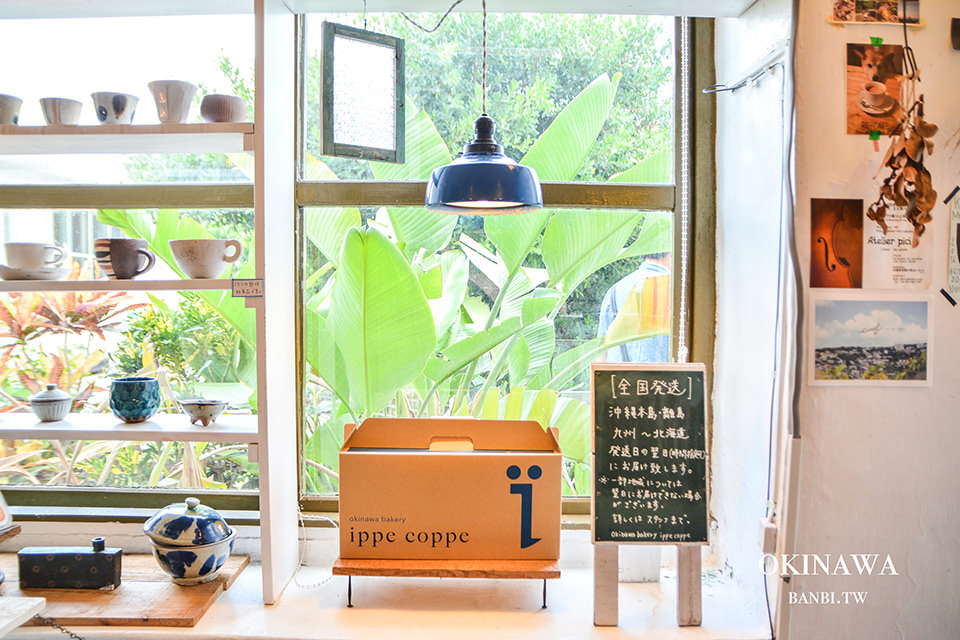沖繩港川這有一區名為外人住宅,以前是駐日美軍基地,美軍撤出後有許多商店、咖啡館進駐,將四方的房屋佈置成各種可愛且顏色不同的房子。其中一間有藍綠色外觀的ippe coppe是天然酵母麵包專門店,店內販售許多使用日本國產小麥麵粉的自家製好吃麵包,非常具有高人氣。