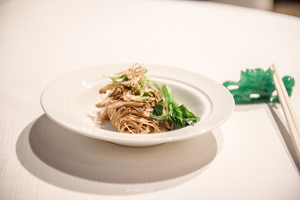 最後一道鹹點,是特製的撈麵。麵條鹼水味適中,醬汁類似XO醬等香重的海鮮香氣,麵味道很足,炸薑絲細去膩,另有厚菇感。