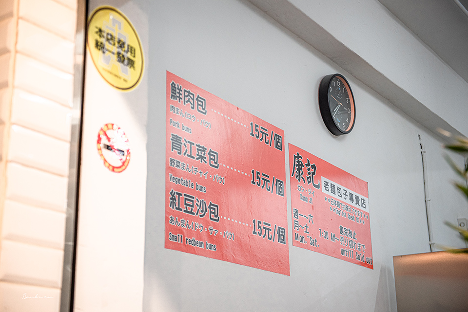 康記老麵包子口味只有鮮肉包、青江菜包、紅豆沙包這三款,每個包子的價格為15元。