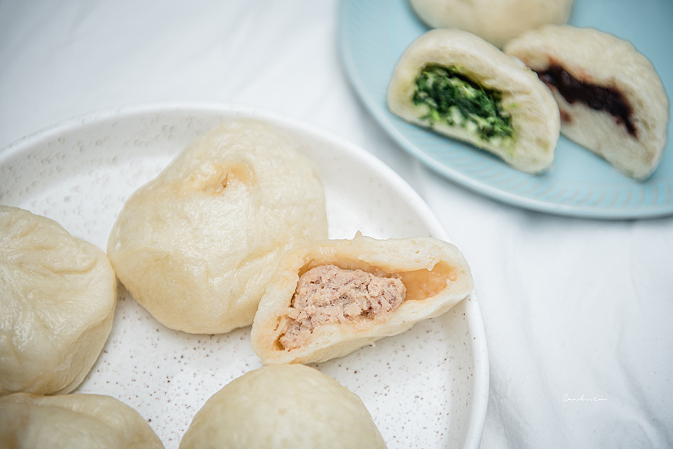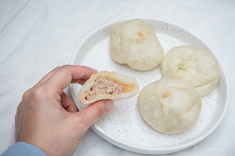 唯一的甜口味紅豆沙包,紅豆餡很細綿,不過少了肉跟青菜的水分滋潤,相較之下吃起來是三款中較為乾口的。我還是喜歡鮮肉包跟青江菜包。