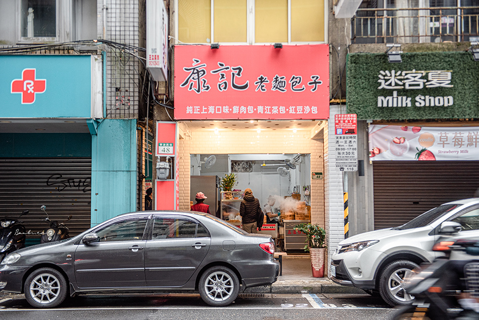 早上07:30左右,寧波西街少了熱鬧的人潮,周邊的店面大多仍在休息中。隨著熱煙走去,原來是在上班族和學生們通勤的時間開店的康記老麵包子。