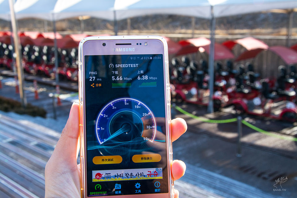 我到江原道的江川鐵道騎鐵道單車時使用也很順暢,是4G網路。